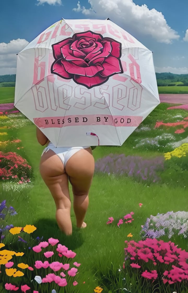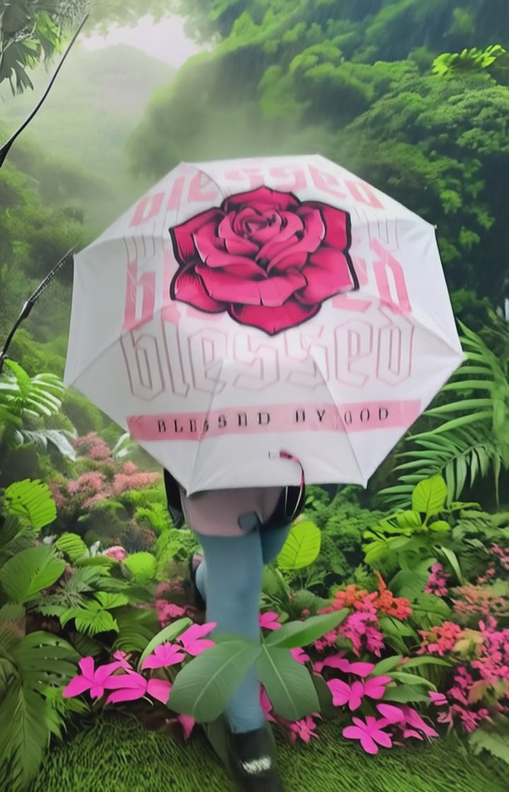 Blessed By God Rose Design Semi-Automatic Foldable Umbrella - Stylish & Functional Weather Protection