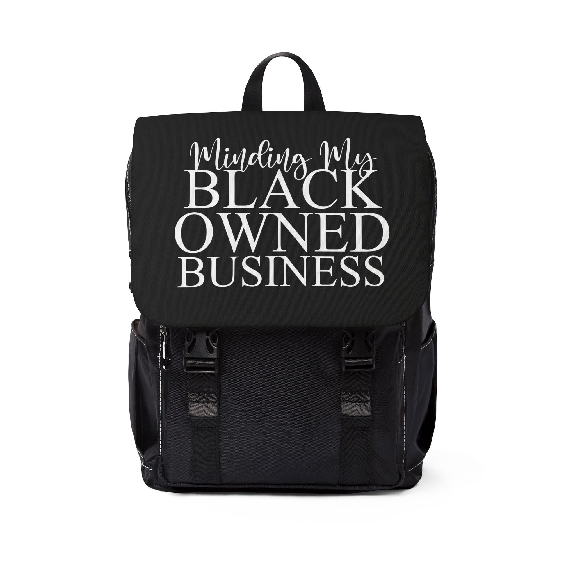 Minding My Black Owned Business Unisex Backpack (White and Black)